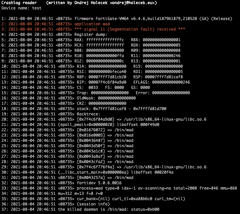 - The last column RUNNING FORshows how long ago the current process was started. FortiOS automatically restarts the process if it fails for any reason, but the restarted process will get new PID and column will reset as well.