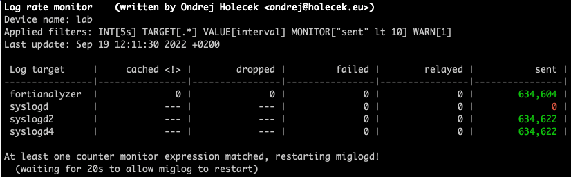 - Red - expression is matching and miglogd is being restarted.